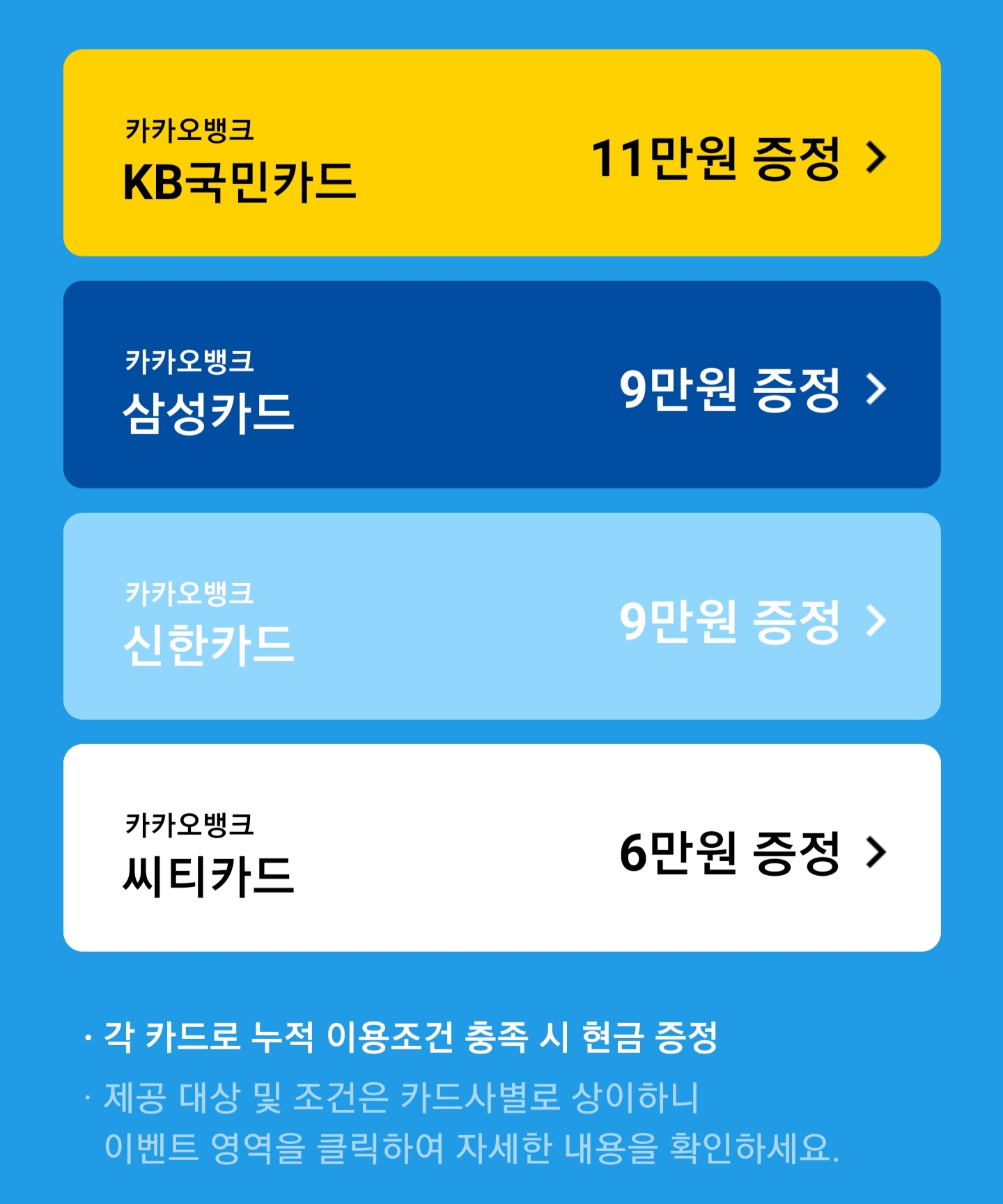 카카오뱅크 KB국민카드 - 이용이벤트 11만원 증정