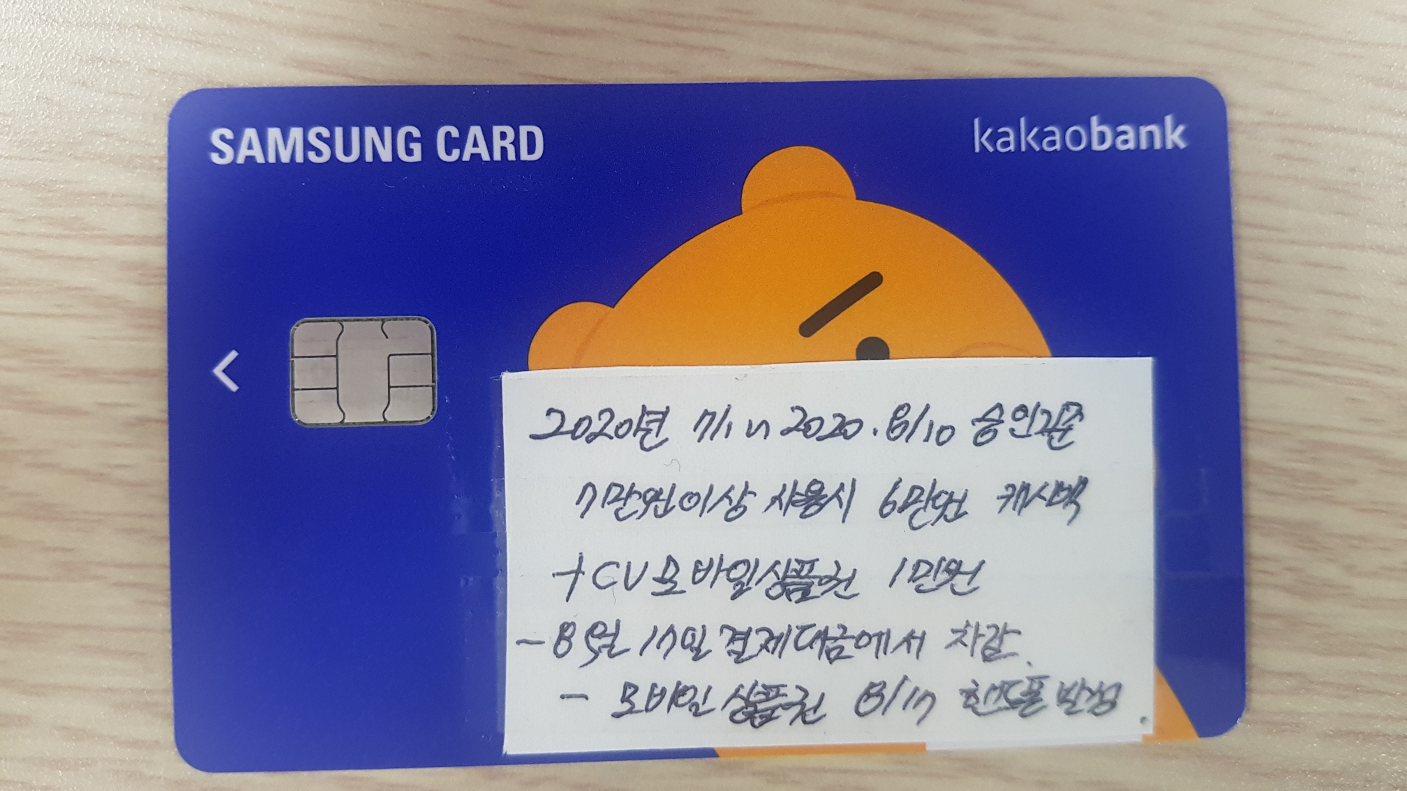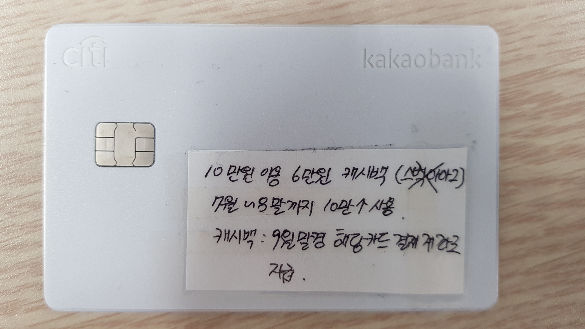 카드를 발급받고 난 뒤 그대로 두면 조건들을 잊어버리기 때문에 카드위에 종이에 다가 펜으로 내용을