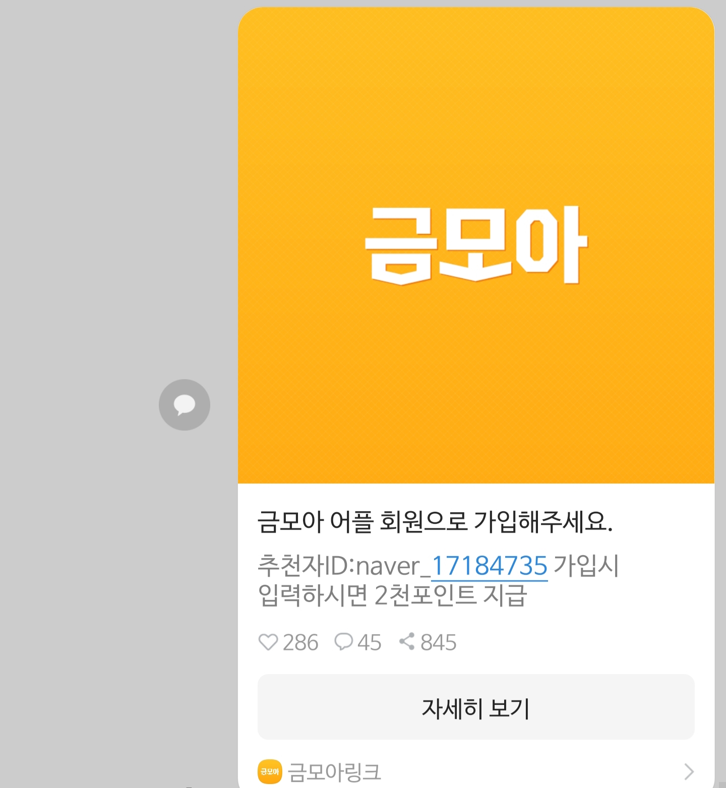 금모아에서 입력 후 가입시 2천 포인트 지급