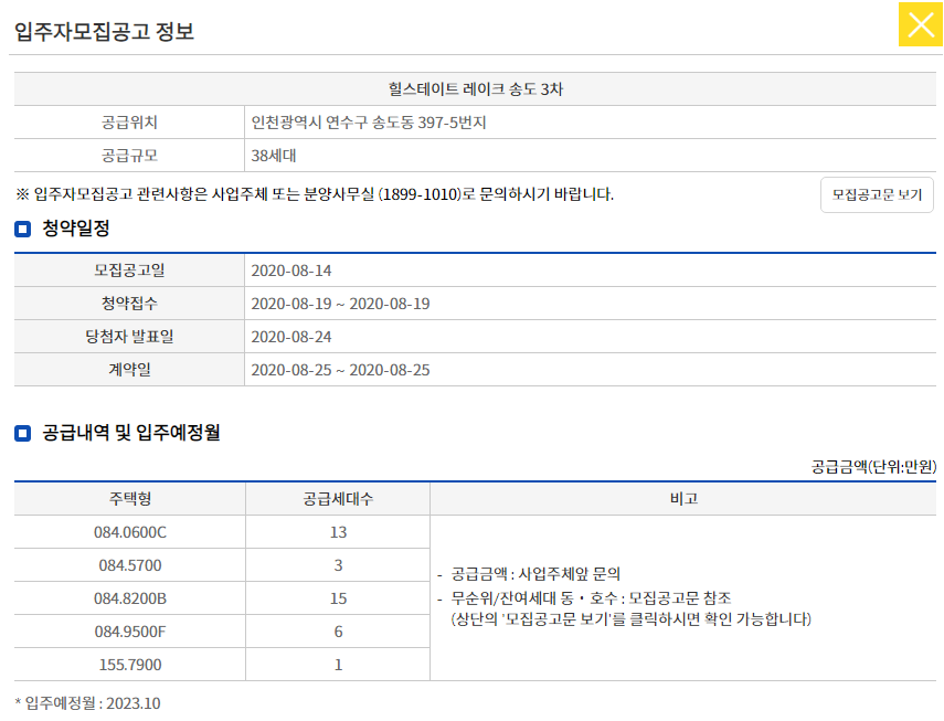 ■ 본 아파트 무순위 사후접수 입주자모집공고일은 2020.08.14.(금)입니다.