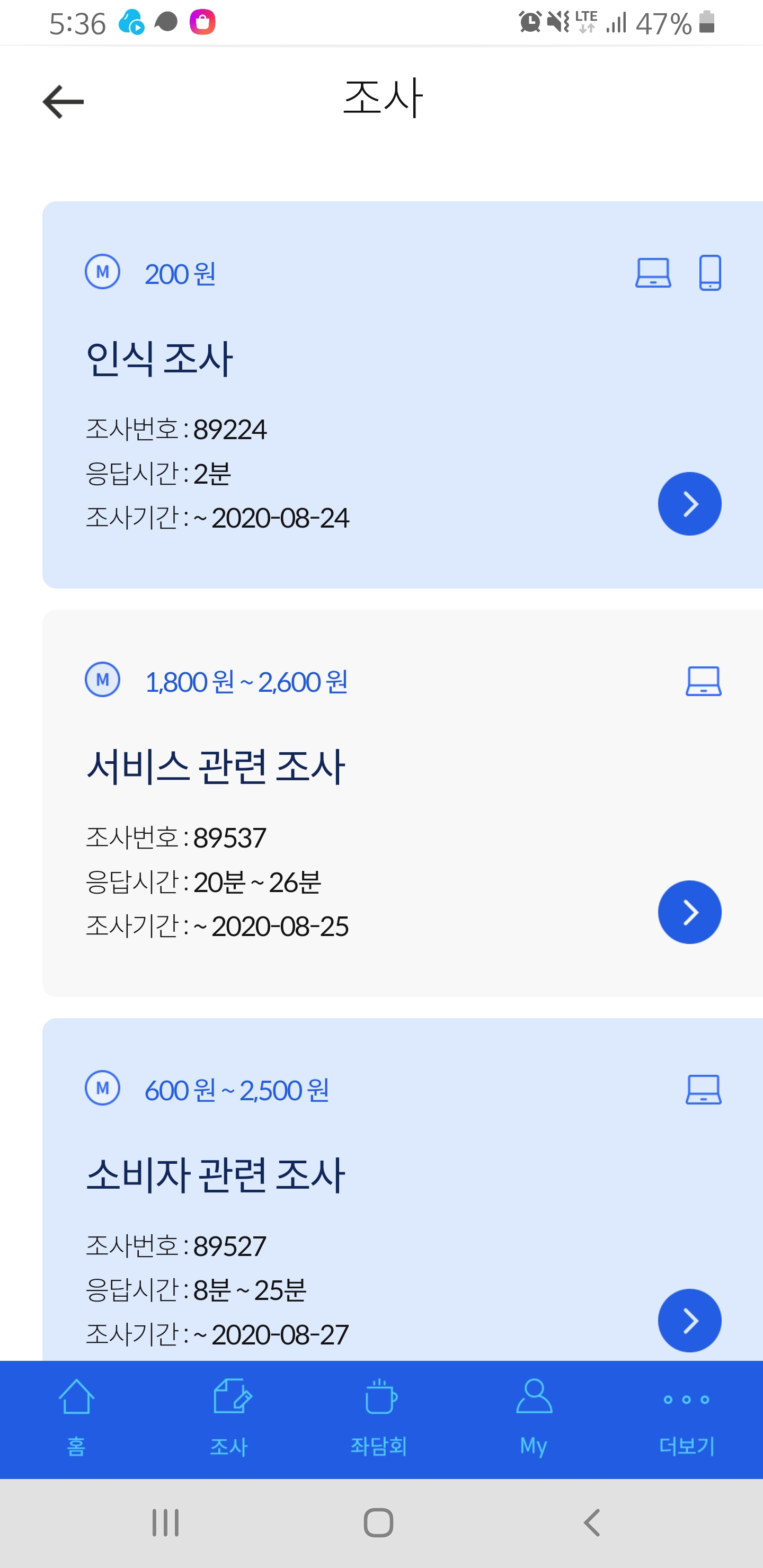 이번달부터 설문조사앱을 열심히 하기 시작했습니다.