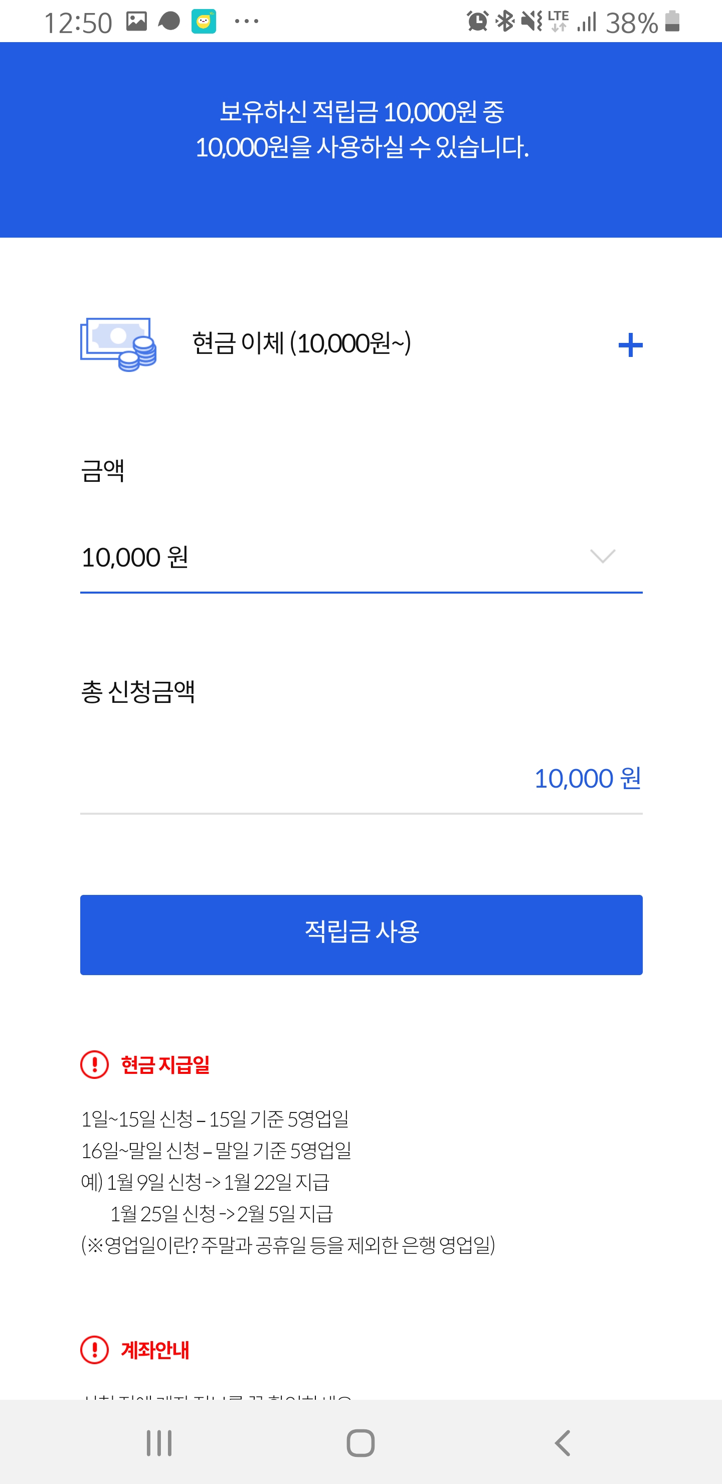 1만원을 모으게 되면 계좌이체가 가능해서 그것 또한 장점입니다.