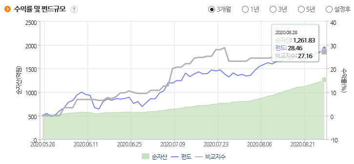 최근 3개월로 따져도 수익률이 28%정도입니다. 최근 주식시장이 워낙 좋고, 전기차 관련 주식들이 모두 성장세이기 때문에 좋은 수익률을 보이는 것 같습니다.