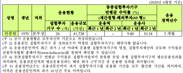 나의 펀드를 운용해주실 분은 안종현 본부장님이었습니다. 본부장님이 운용해주신다고 하니까 뭔가 믿음직스럽고 기분이 좋습니다.