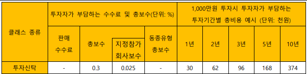TIGER 미국달러 단기채권액티브는 1년간 1000만원을 투자하면 3만원정도의 수수료 및 총보수를 지불해야한다.