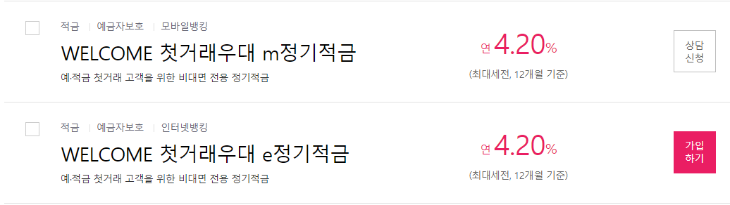 첫거래 우대 적금의 금리가 4.2%로 되어있어서 덜컥 가입을 했습니다.