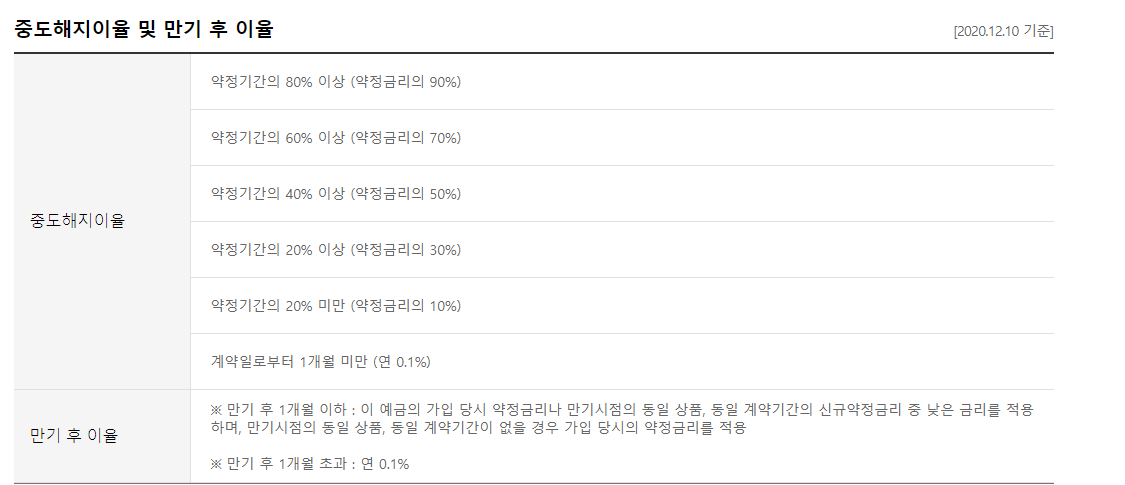 그럴일 없겠지만 중도해지 이율은 약정기간의 비율에 따라서 줄어들게 되어있습니다.