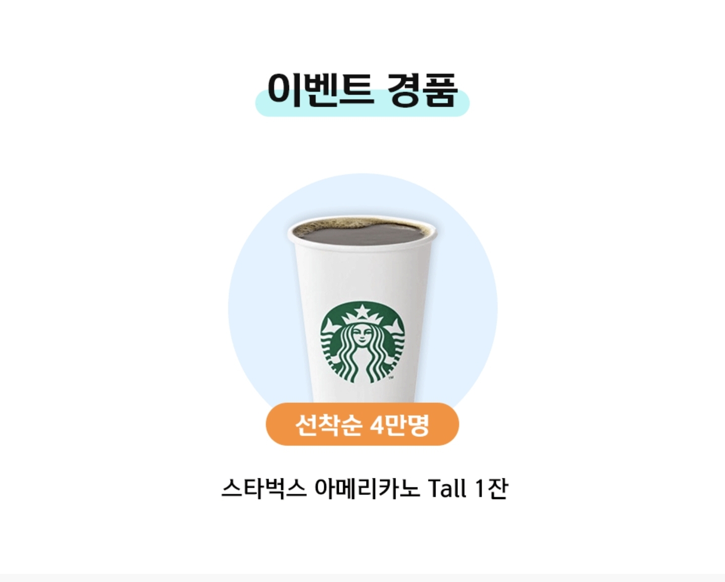이벤트 경품은 스타벅스 아메리카노 톨사이즈 1잔입니다. 그런데 여기서 중요한 조건 1가지 바로 선착순 4만명이라는 것입니다. 우리 앱테크 유저들도 부지런하고 빠르지 않으면 앱테크 못해먹어요 . 그러니 이 글 보셨다면 바로 신청하시는 것을 추천 드립니다. KB국민은행 룰렛 이벤트에서도 매일 선착순 10만명이라고 쫄리게 하더니 이 이벤트도 선착순 4만명이네요.