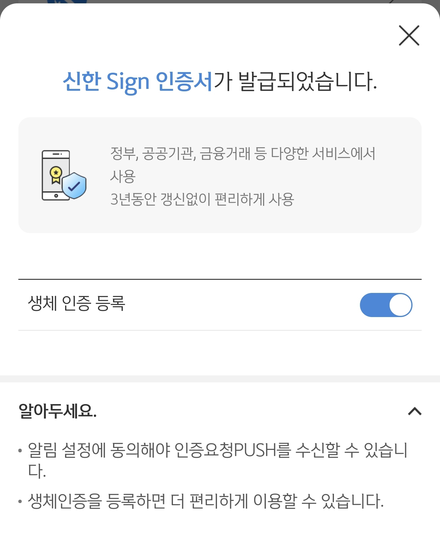 저는 약 30초가 걸려서 신한Sign인증서를 발급 받았구요.