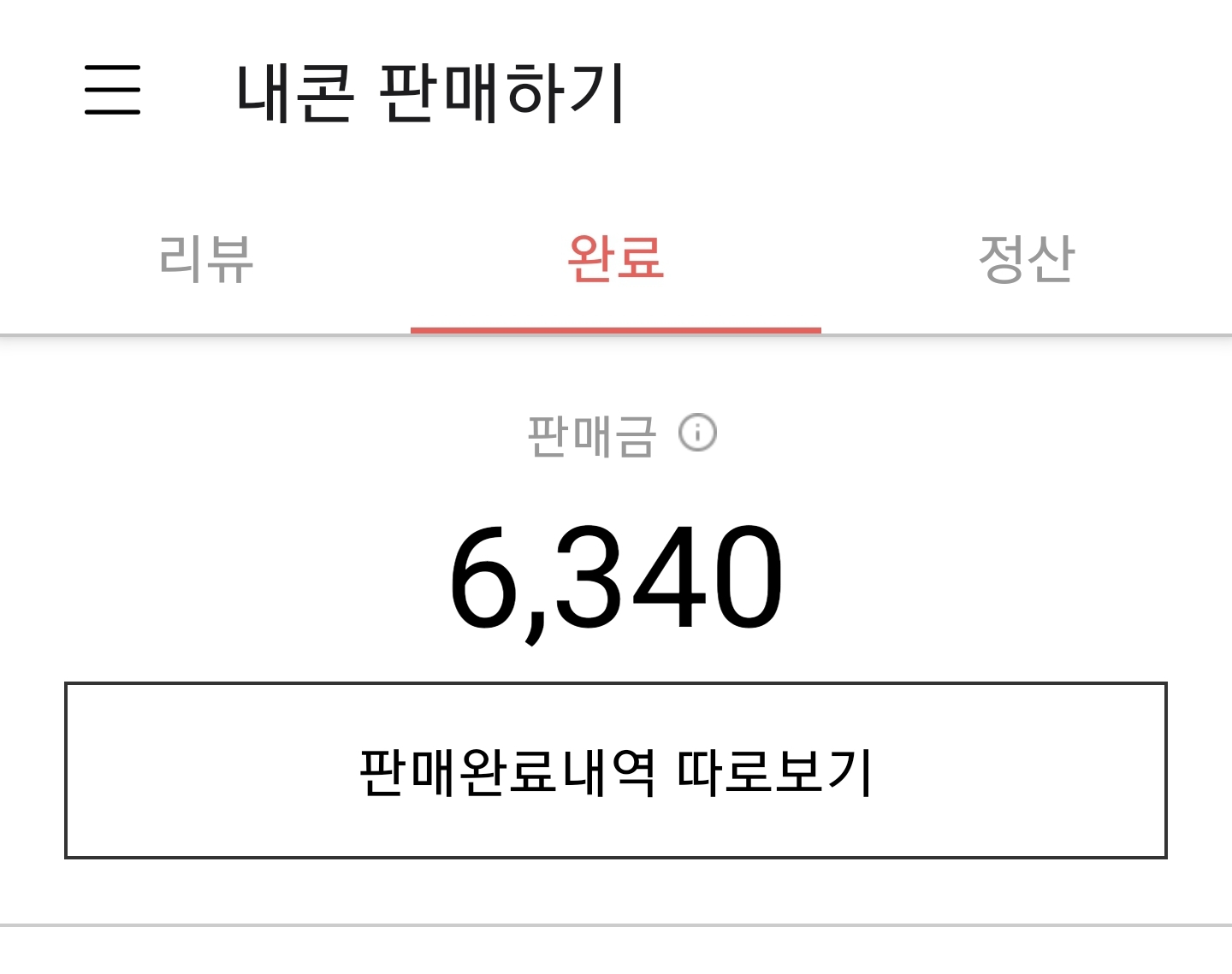 4. 리뷰를 마치고 나서 완료 화면 확인 - 판매금 확인하기