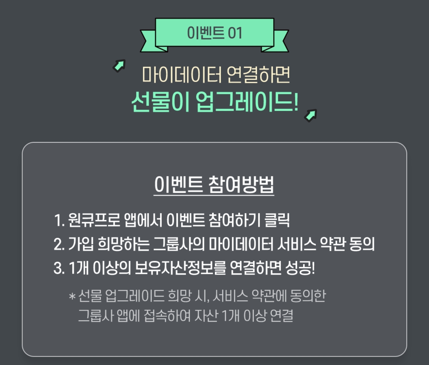 마이데이터 서비스 가입하고 자산 연결만 하면 매주 금요일 경품 당첨 기회가 주어집니다