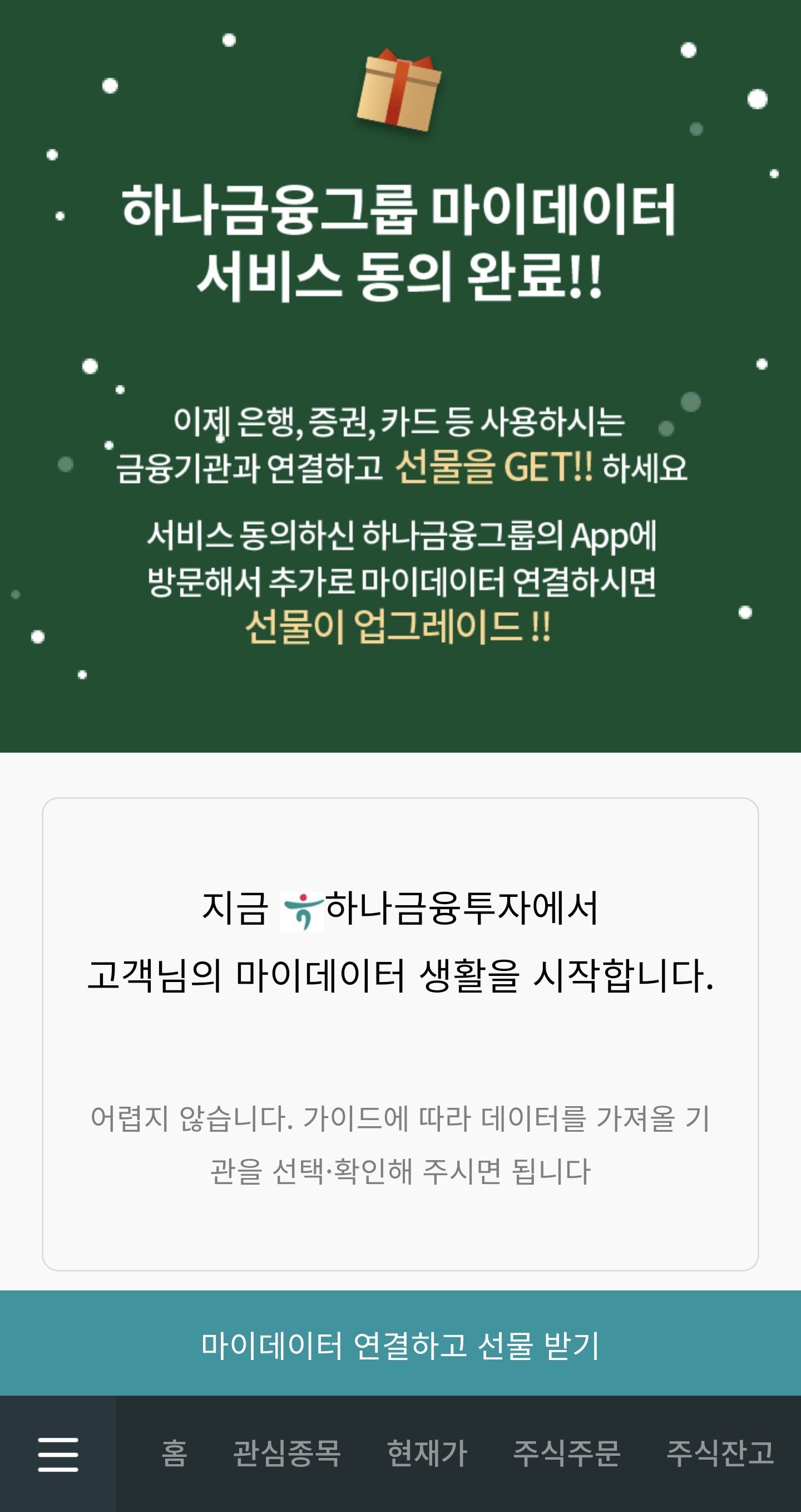 * 첫번째 하나 금융투자 마이데이터 연결 진행 ( 생략 있음)
