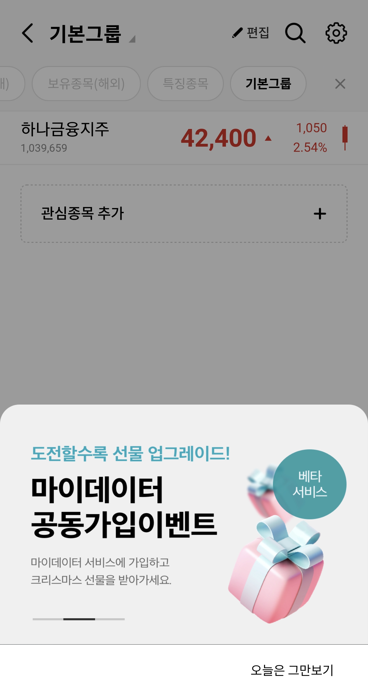 메인 화면에 공지 팝업에서 마이데이터 공동가입이벤트를 찾거나