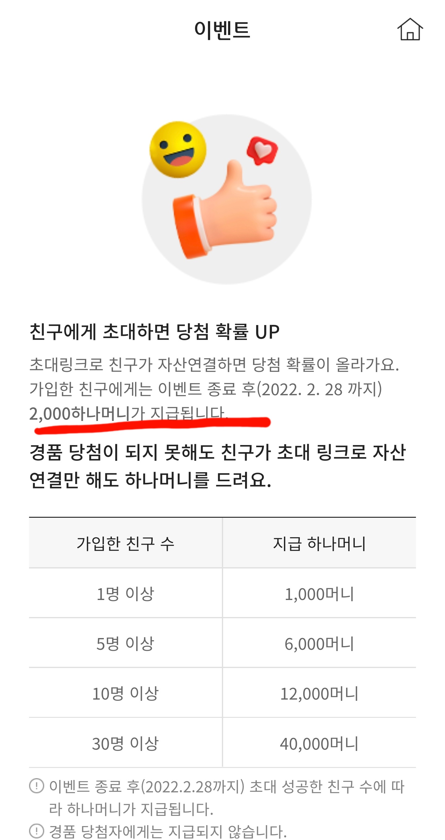 두번째 친구추천코드 입력해서 가입하면 2000하나머니 추가지급됩니다