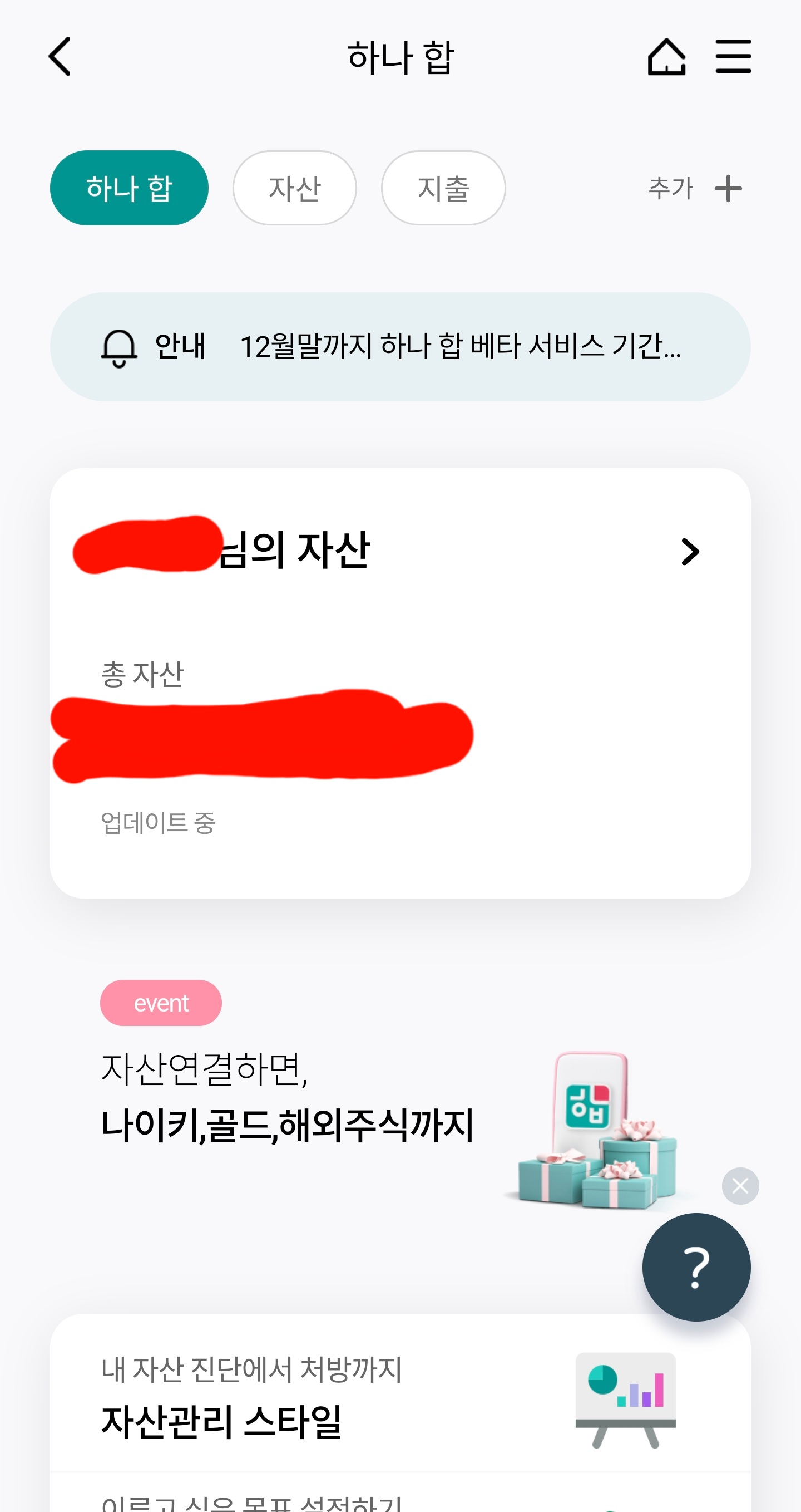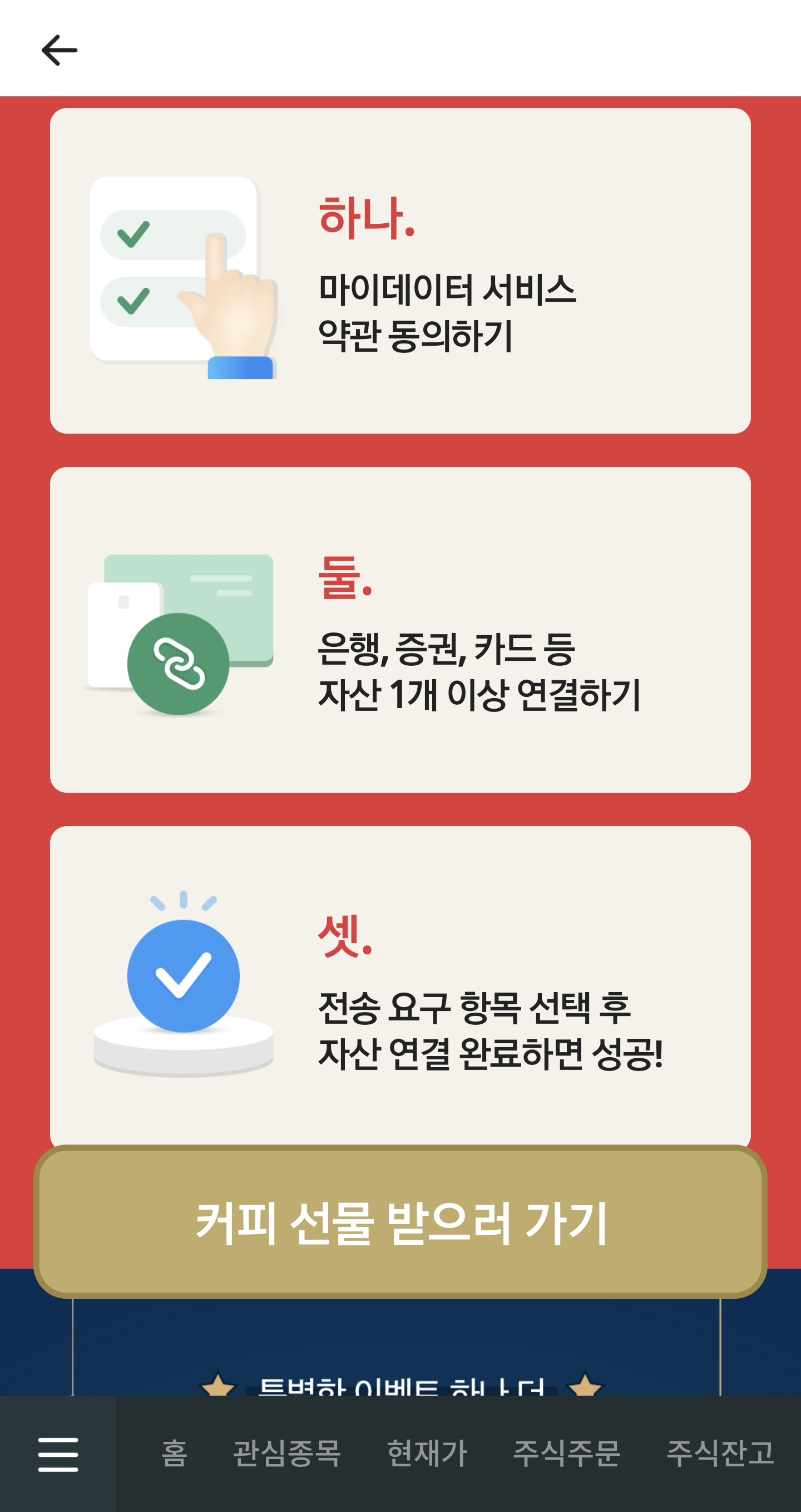 자산연결하면, 나이키,골드,해외주식 까지 배너 버튼 클릭