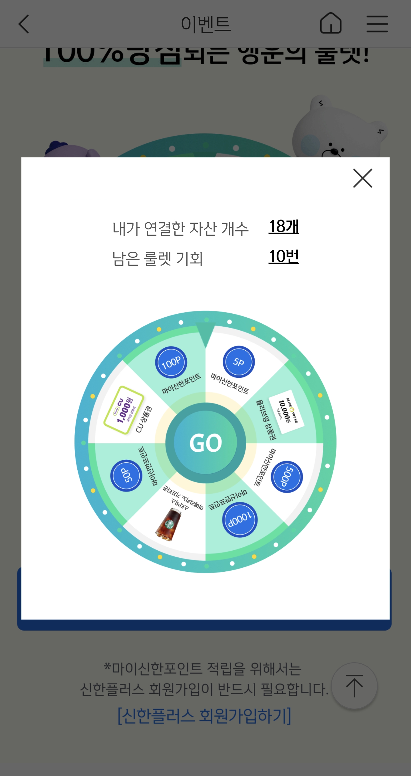 신한플러스가 가입 되어있지 않으시다면 신한플러스에 가입하시고 포인트를 받으세요.