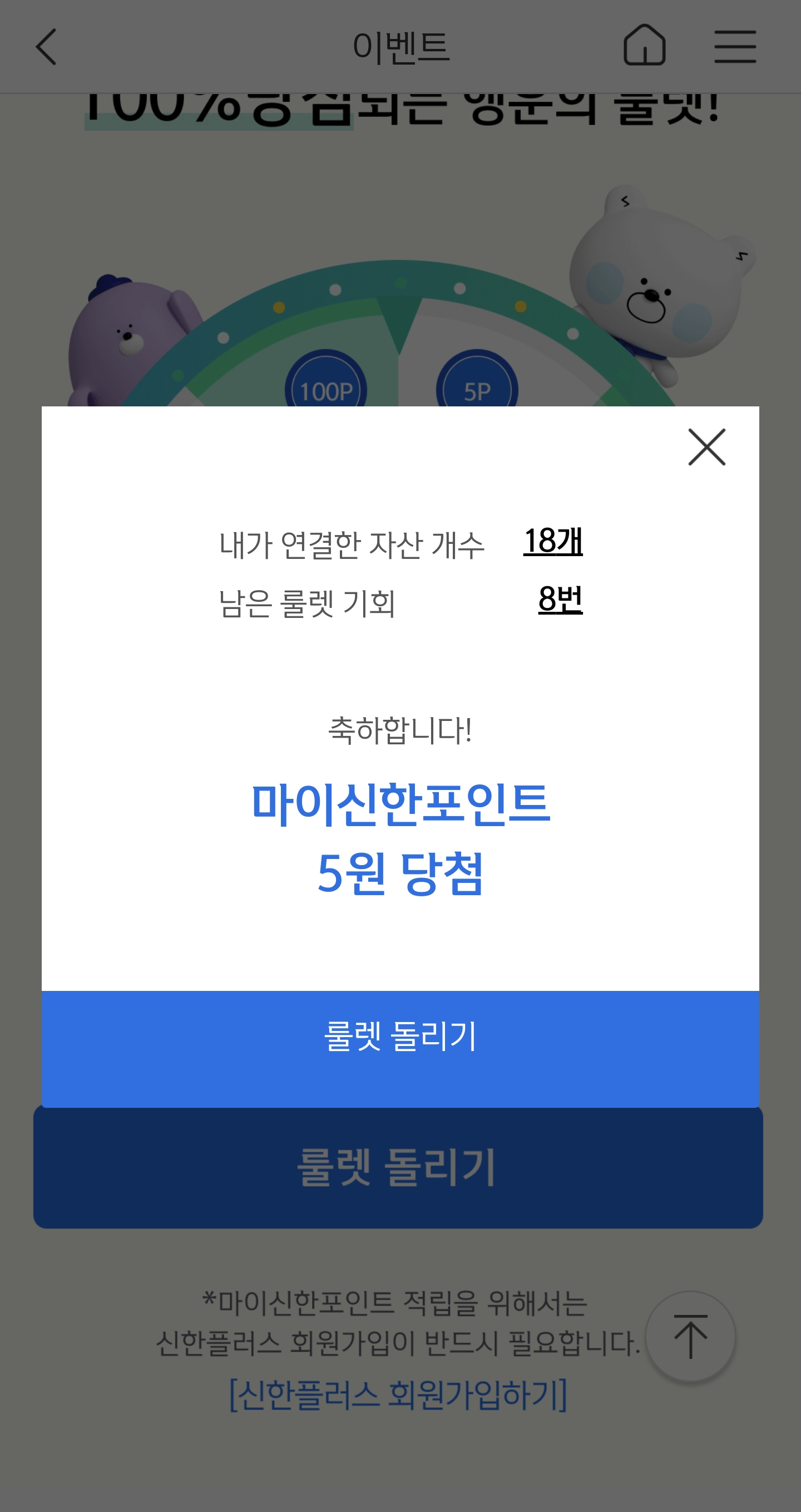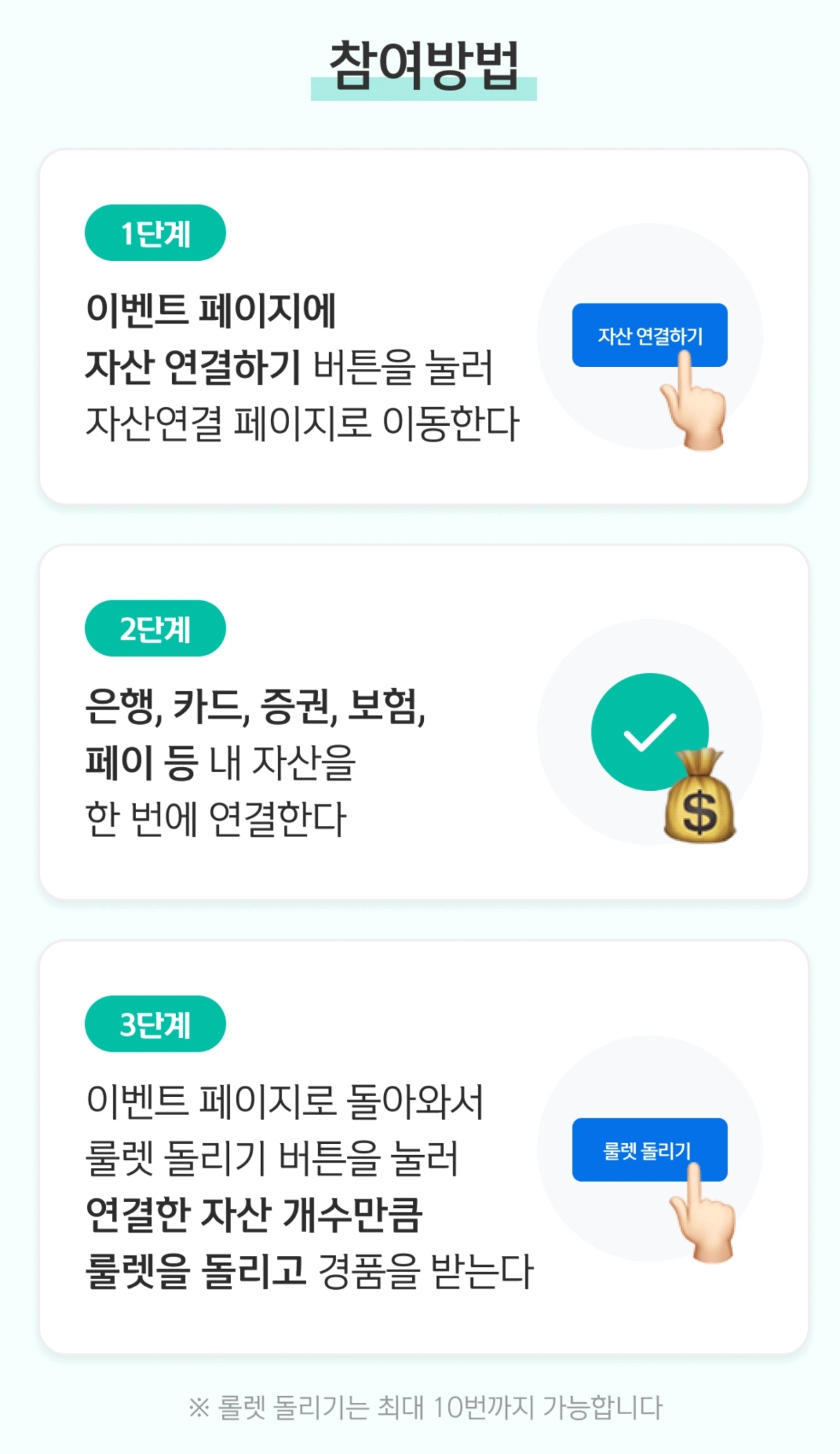 연결한 자산 갯수만큼 룰렛을 돌려서 포인트를 받는 것입니다.