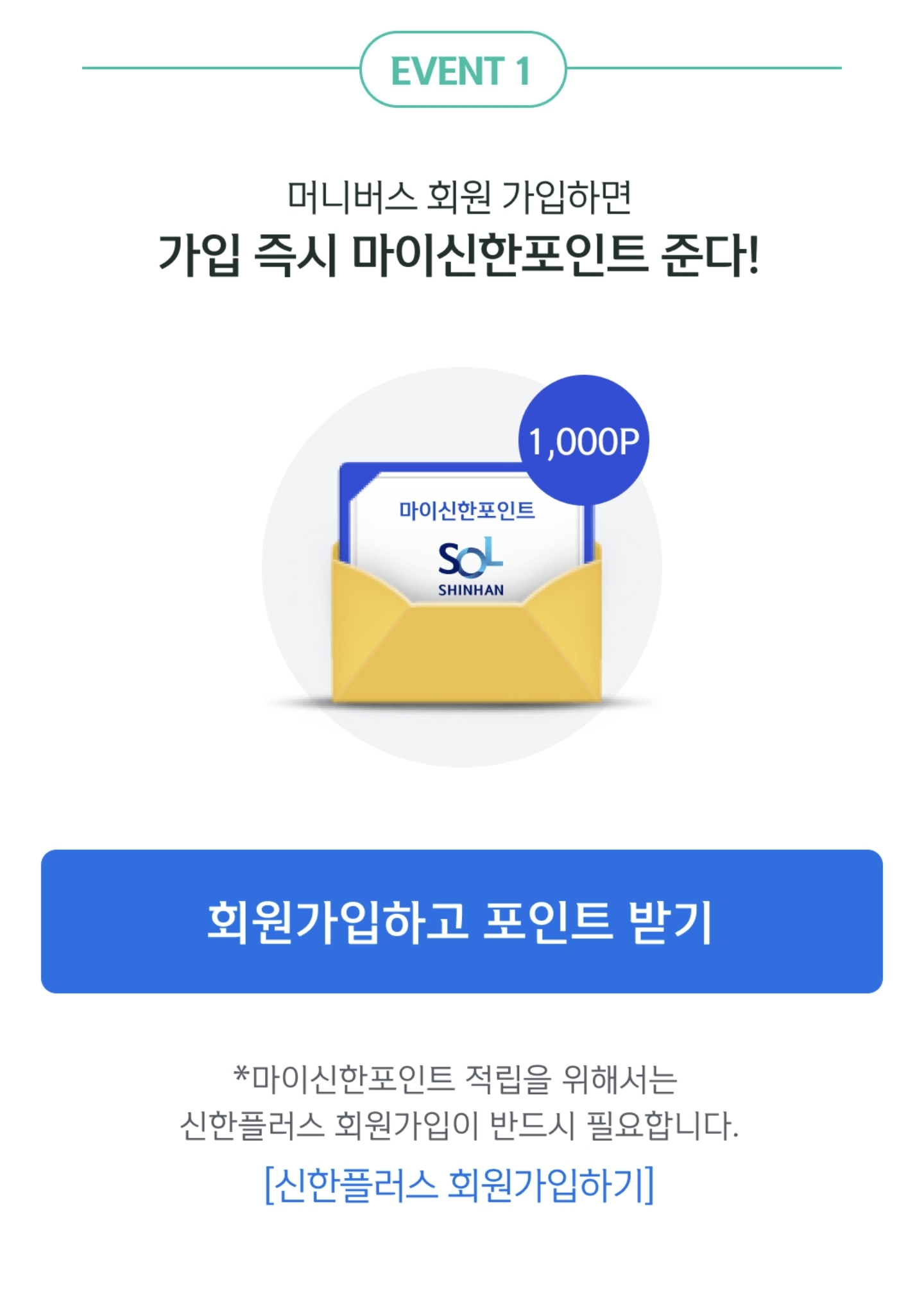 머니버스를 가입하면 그 즉시 마이신한포인트 1000포인트를 받습니다. (현금화 가능)