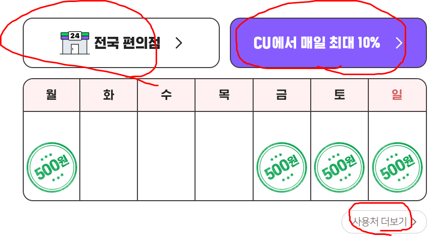 요일 스탬프 7개 다 채우면 3,500원.