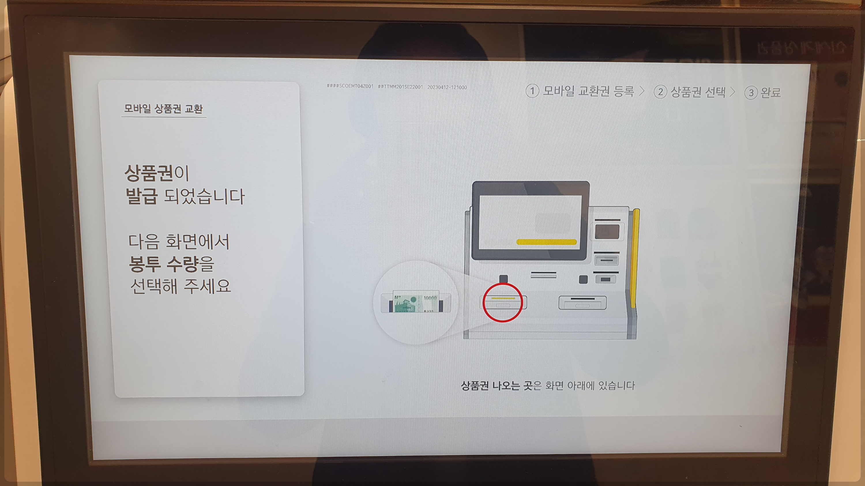 바코드가 스캔되고 나면 상품권이 발급 됩니다.