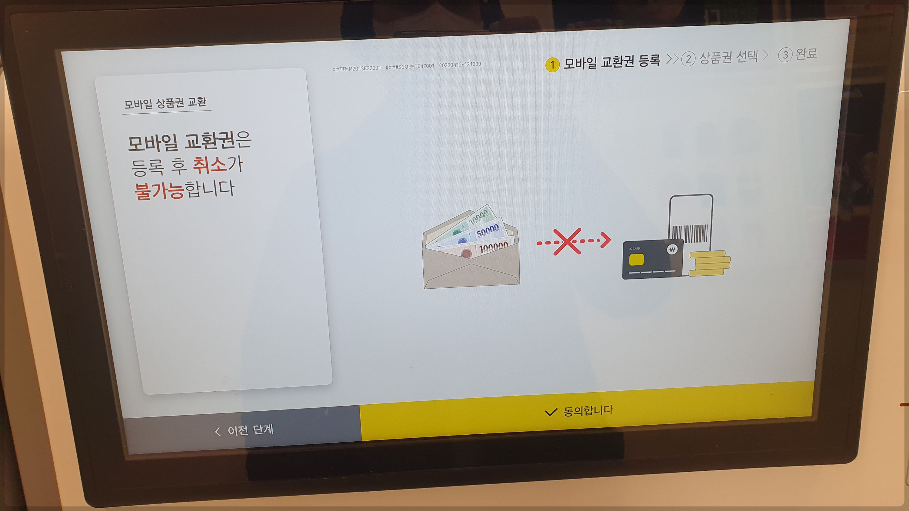 "모바일 교환권은 등록 후 취소가 불가능 합니다" 라는 문구와 함께 동의하고 진행합니다.