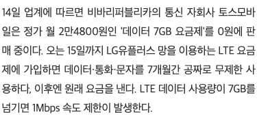 월 24800원인 데이터 7GB요금제를 0원에 판매하는 이벤트 였던 것이다.