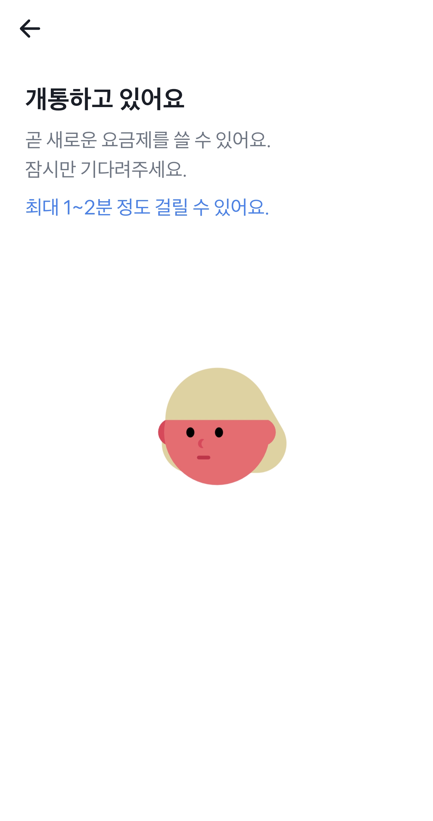 입력단계들을 완료 하면 개통을 진행하고 있다고 표시가 된다.