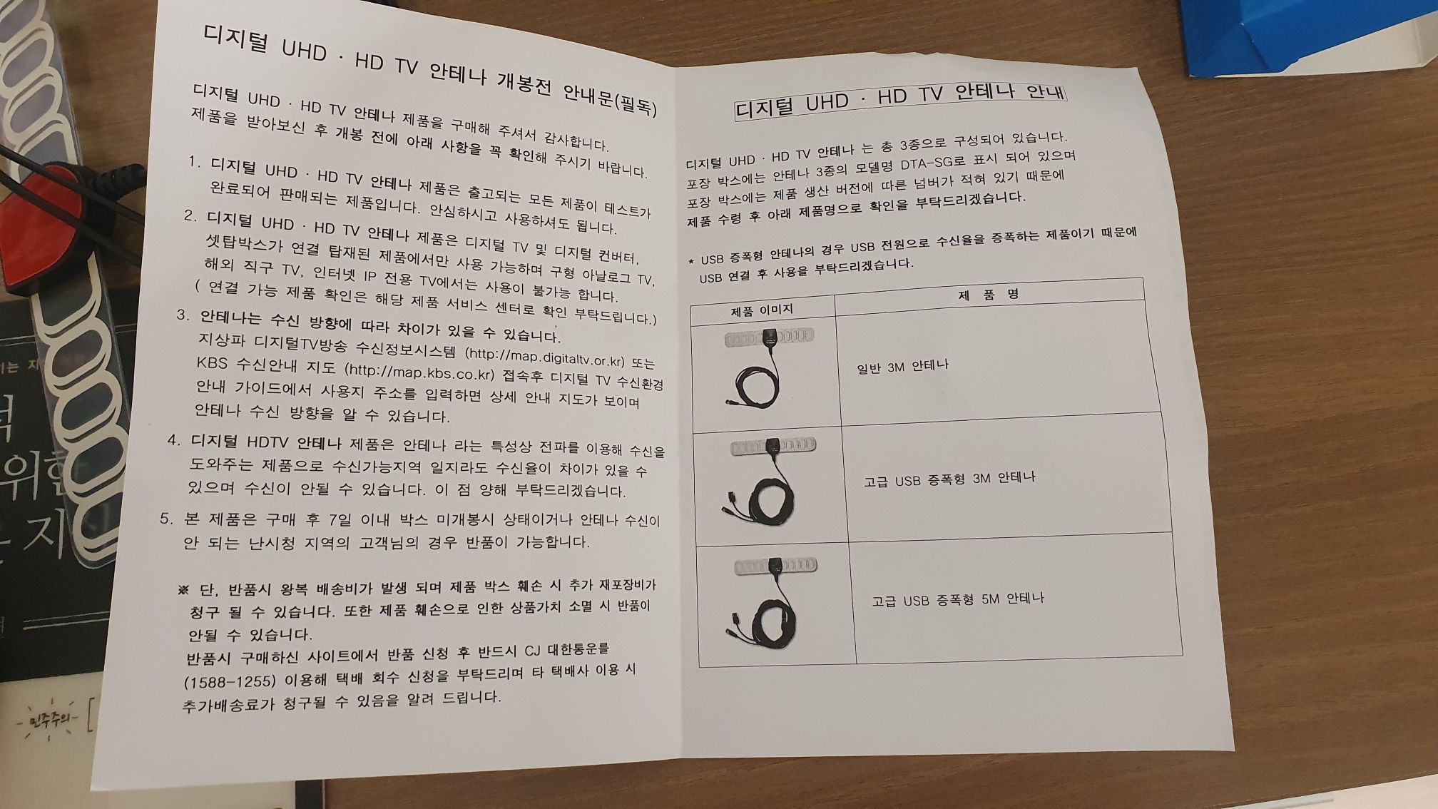 티비 수신 안테나선과 USB 부스터가 달려있어서 수신율이 더 좋아 진다고 한다.